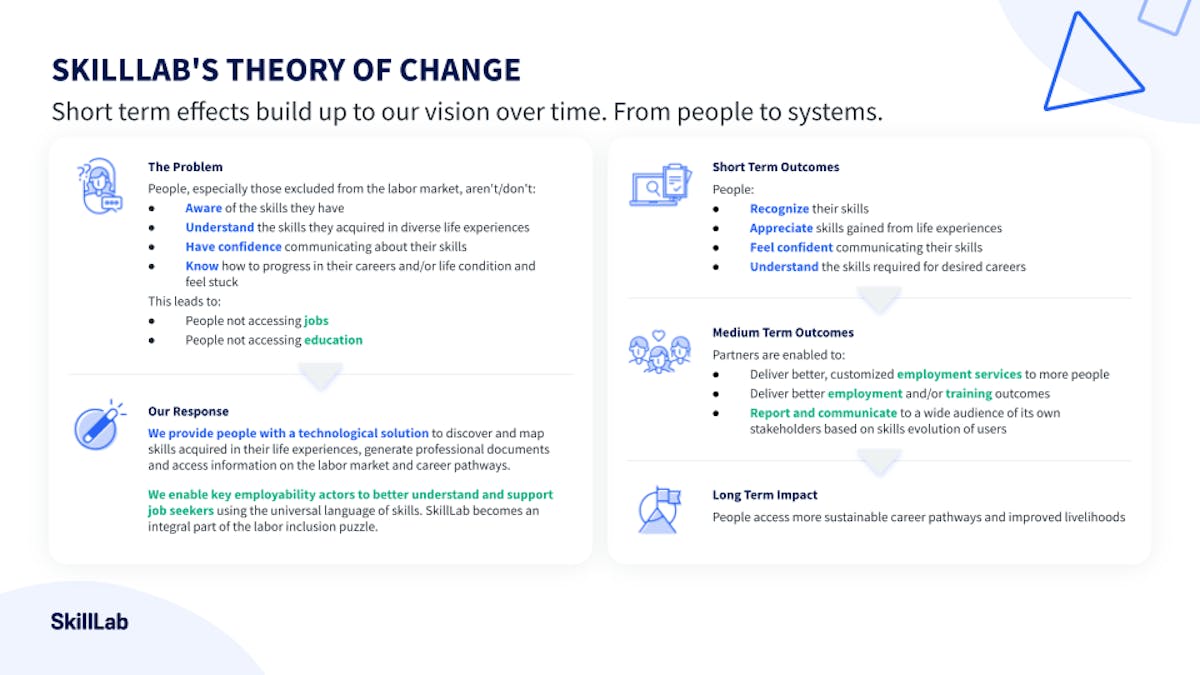 These examples show the transformative impact of our purpose-driven work. SkillLab empowers individuals to overcome barriers, achieve their career aspirations, and contribute meaningfully to society. We witness refugees building new lives, young mothers envisioning brighter futures, and people navigating career transitions with confidence. Ultimately, SkillLab is driving positive change by creating more inclusive economies and empowering individuals to thrive.